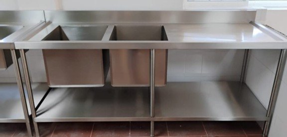 Cuenta con tinas de 50 × 50 × 40 cm y un práctico escurridero que facilita el lavado y secado de utensilios.